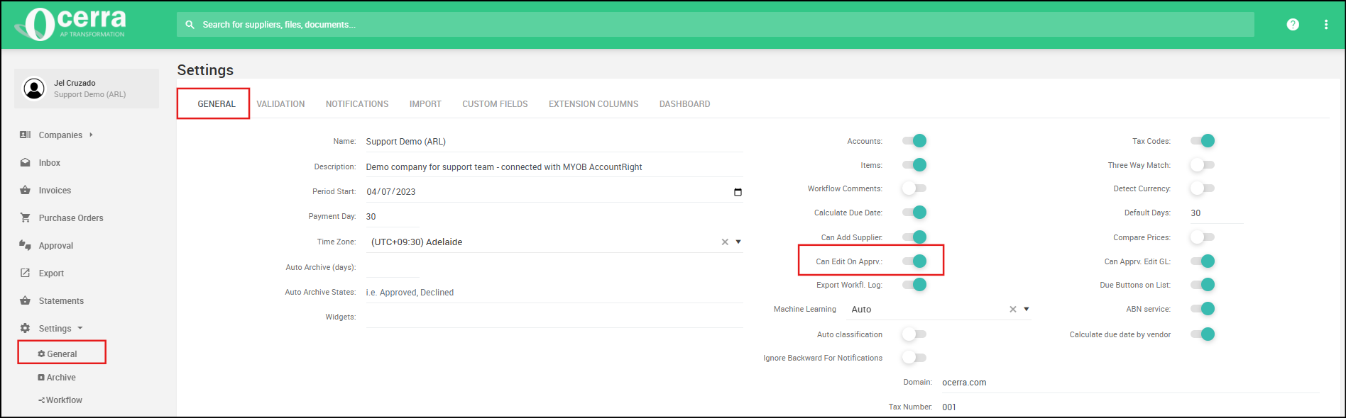 - Navigate to Settings - General - and enable Can Edit On approval page parameter and click save: