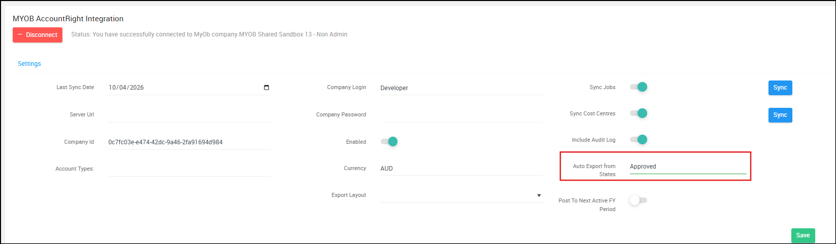 - Correctly write an invoice status that you would like to use for auto-export, e.g. Submitted, Approved.